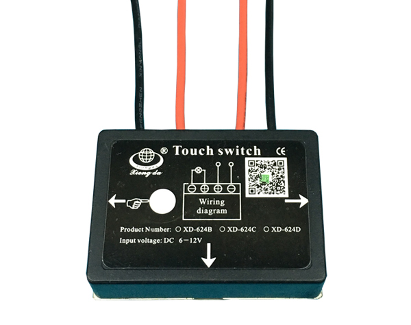 接線方式:其中一條紅線和黑線接“+、-”DC:6-12V輸入,另一條紅線接LED燈 “+”極,黑線接LED燈“-”極,黑色的觸摸頭安裝在木材背面。 (具體參考開(kāi)關(guān)接線圖) |