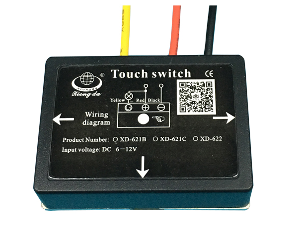 接線方式:紅線和黑線接“+、-”DC:6-12V輸入,紅線再與黃線接燈具,黑色的觸摸頭安裝在鏡子的背面。 |