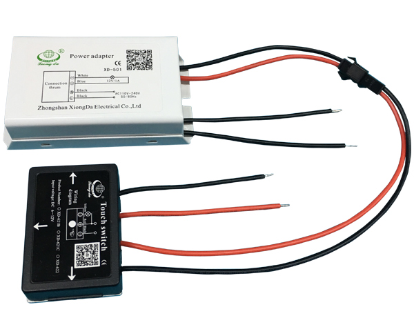 接線(xiàn)方式:電源上的2條黑線(xiàn)接AC100-250V輸入,觸摸開(kāi)關(guān)上的紅線(xiàn)為DC12V“+”輸出接LED燈具“+極”,黑線(xiàn)為DC12V“-”輸出接LED燈具的“-極” ,黑色的觸摸頭安裝在鏡子的背面。 |